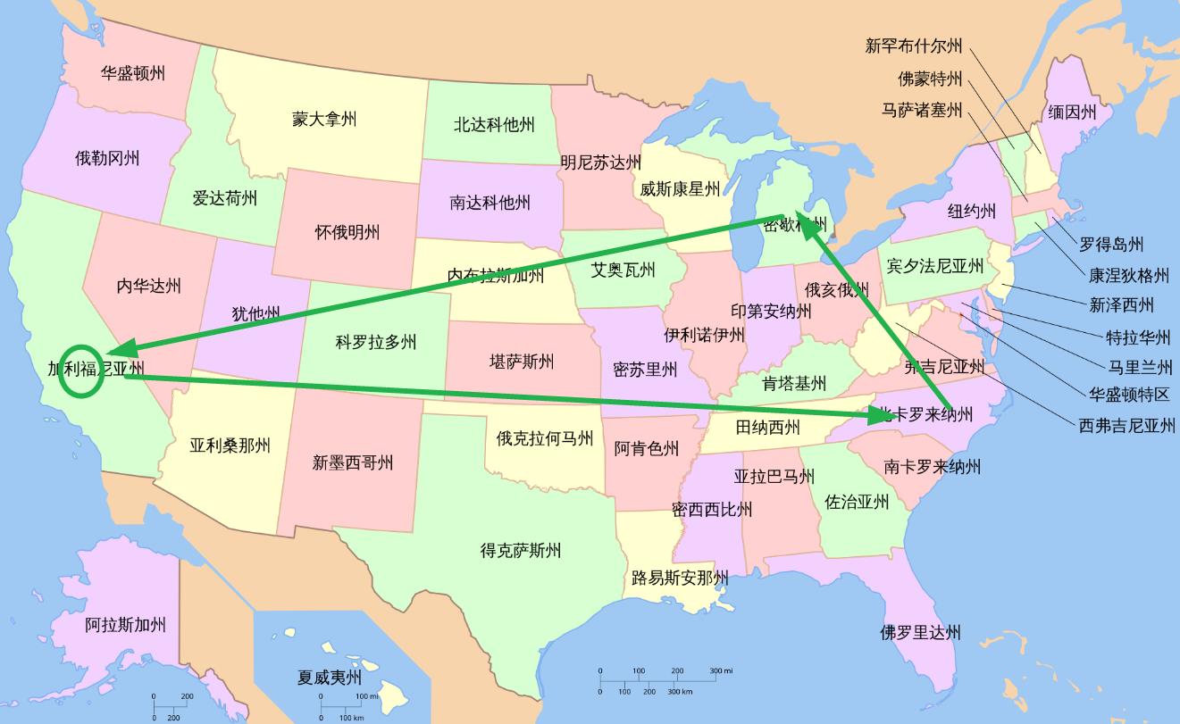 - ??克內(nèi)克特一周飛行路線:LA→夏洛特→底特律→LA