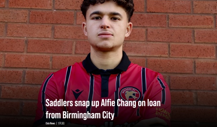英乙領(lǐng)頭羊沃爾索爾官宣,球隊從伯明翰租借22歲華裔中場阿爾菲-張,租期至本賽季結(jié)束。
